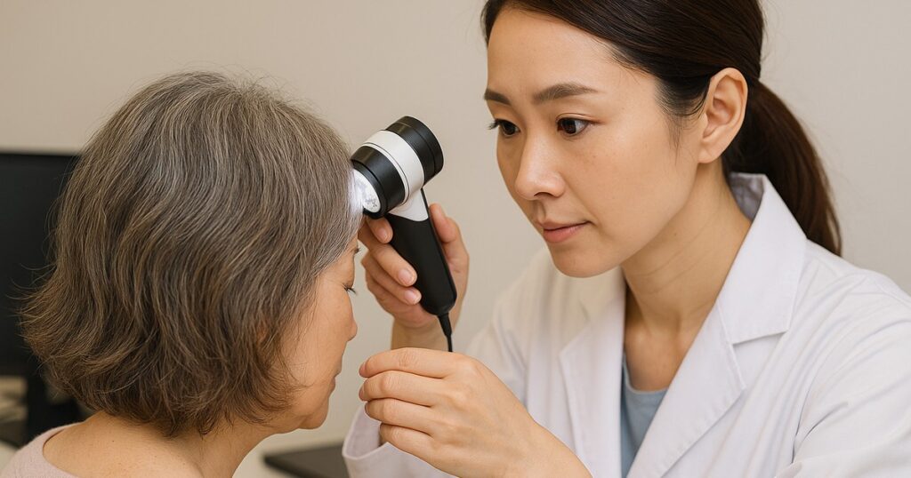 まずは皮膚科・美容皮膚科での診察が基本です。更年期症状の総合的な相談は婦人科とも連携できる体制が望ましく、甲状腺や貧血の疑いがあれば内科で検査を行います。選び方の目安は、初診時に問診・採血・頭皮所見の記録(写真やマイクロスコープ)を行い、治療とセルフケアの両輪で計画を提示してくれること、期待できる範囲と副反応・禁忌を明確に伝えてくれること、3〜6か月単位での再評価を前提にしていることです。過度な即効性を約束する表現より、現実的なスケジュールとモニタリングを重視する施設が安心です。