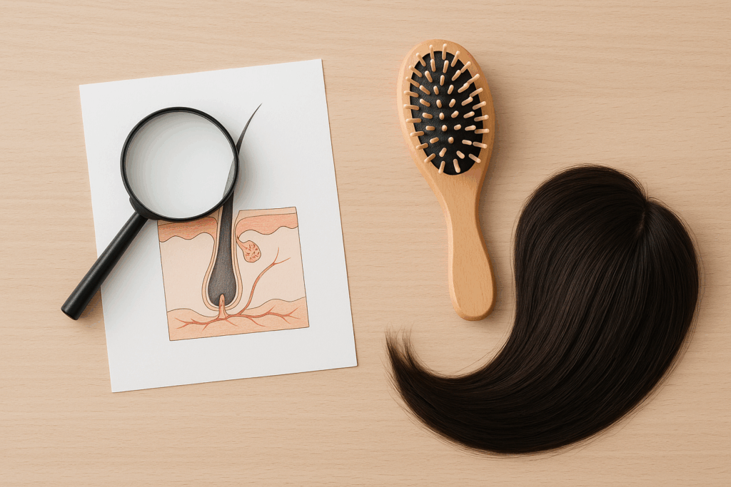 このほか、牽引性脱毛(編み込みやポニーテール)、円形脱毛症、脂漏性皮膚炎など別疾患もあります。強い痒み・赤み・ふけが続く、急激に脱毛が進む場合は皮膚科で診断を受けましょう。