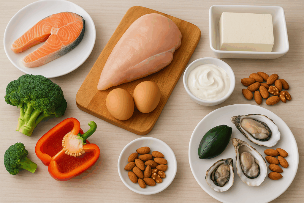 - 亜鉛源:牡蠣・牛赤身・豚レバー・納豆・カシューナッツ